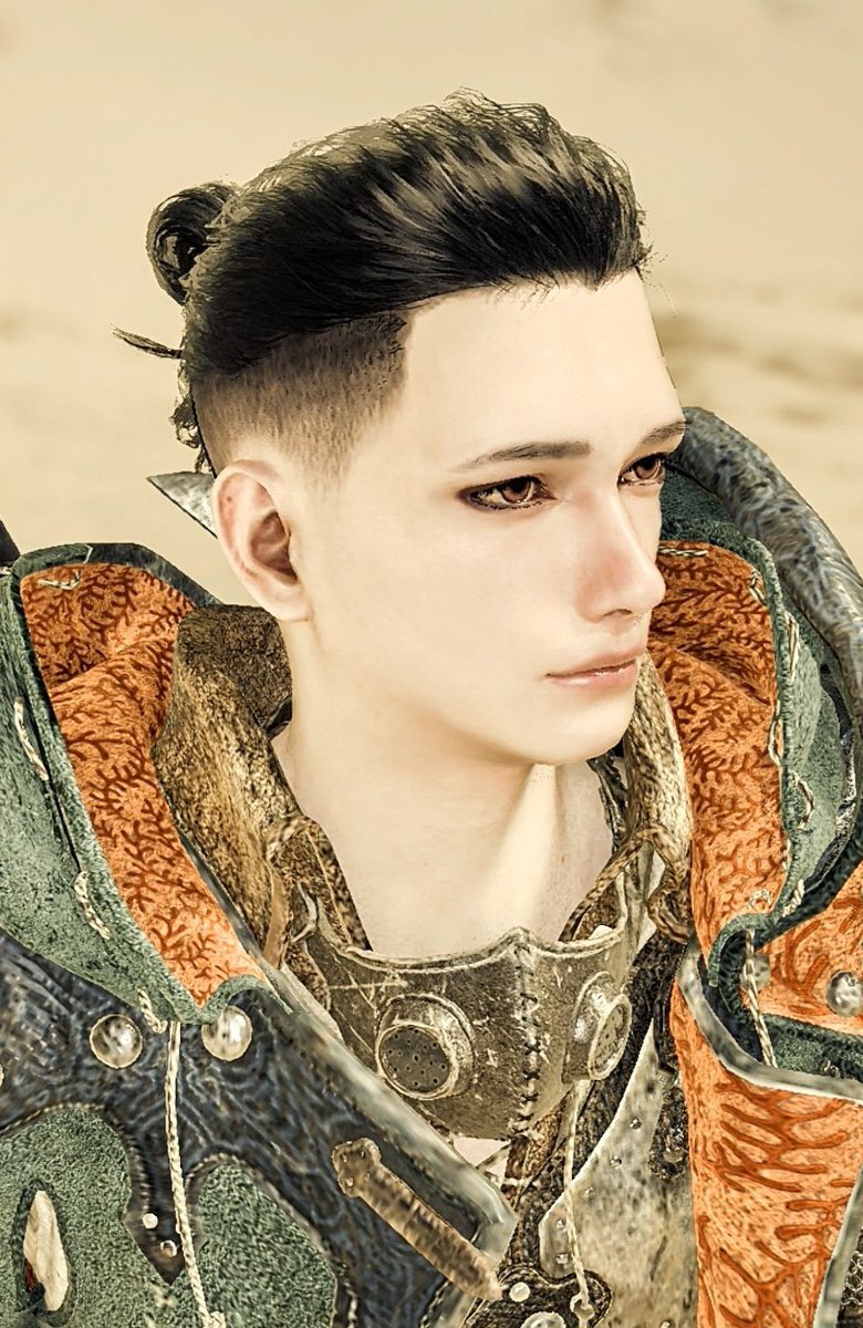 某大きな🌰みたいな名前の刀()が好きで男性ハンターはああいう雰囲気にしたい 褐色の重ね着がわたしには扱えなさそうなのと、なにより自ハンは自ハンでいてほしいのでキャラ再現はしませんが👉🏻👈🏻 x.com/hrmtsn327/stat…